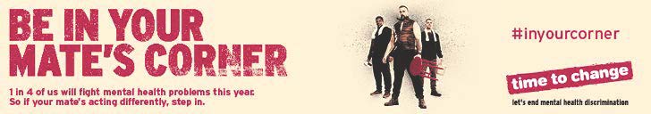 1 in 4 of us will fight a mental health problem this year. Yet, too many people are still made to feel isolated, ashamed and worthless as a result. Being in your mate's corner could make all the difference. So, if your mate is acting differently, step in. Here are three ways: Ask them how they are - face to face, by text or by phone, Listen, without judging. Be yourself - talk about normal, everyday things.