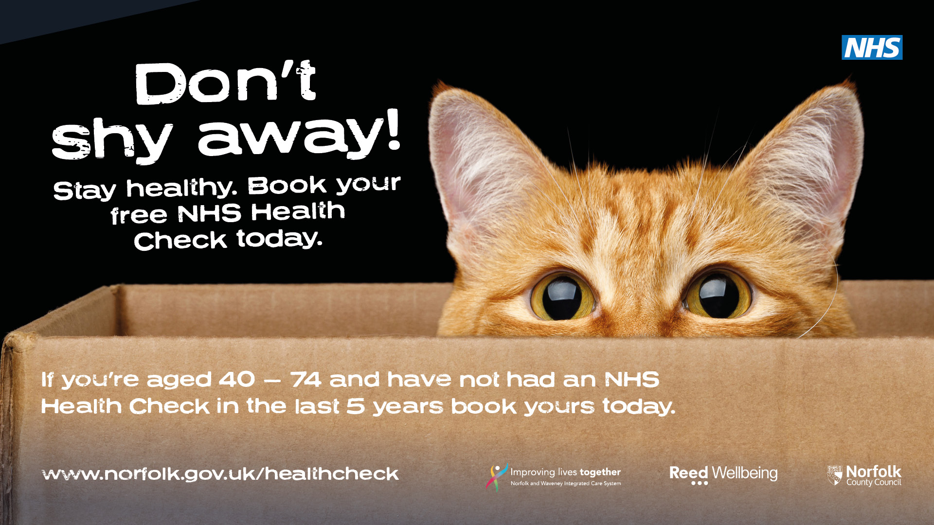 Don't shy away! Stay healthy, book your free NHS Health Check today - cat (digital screen)