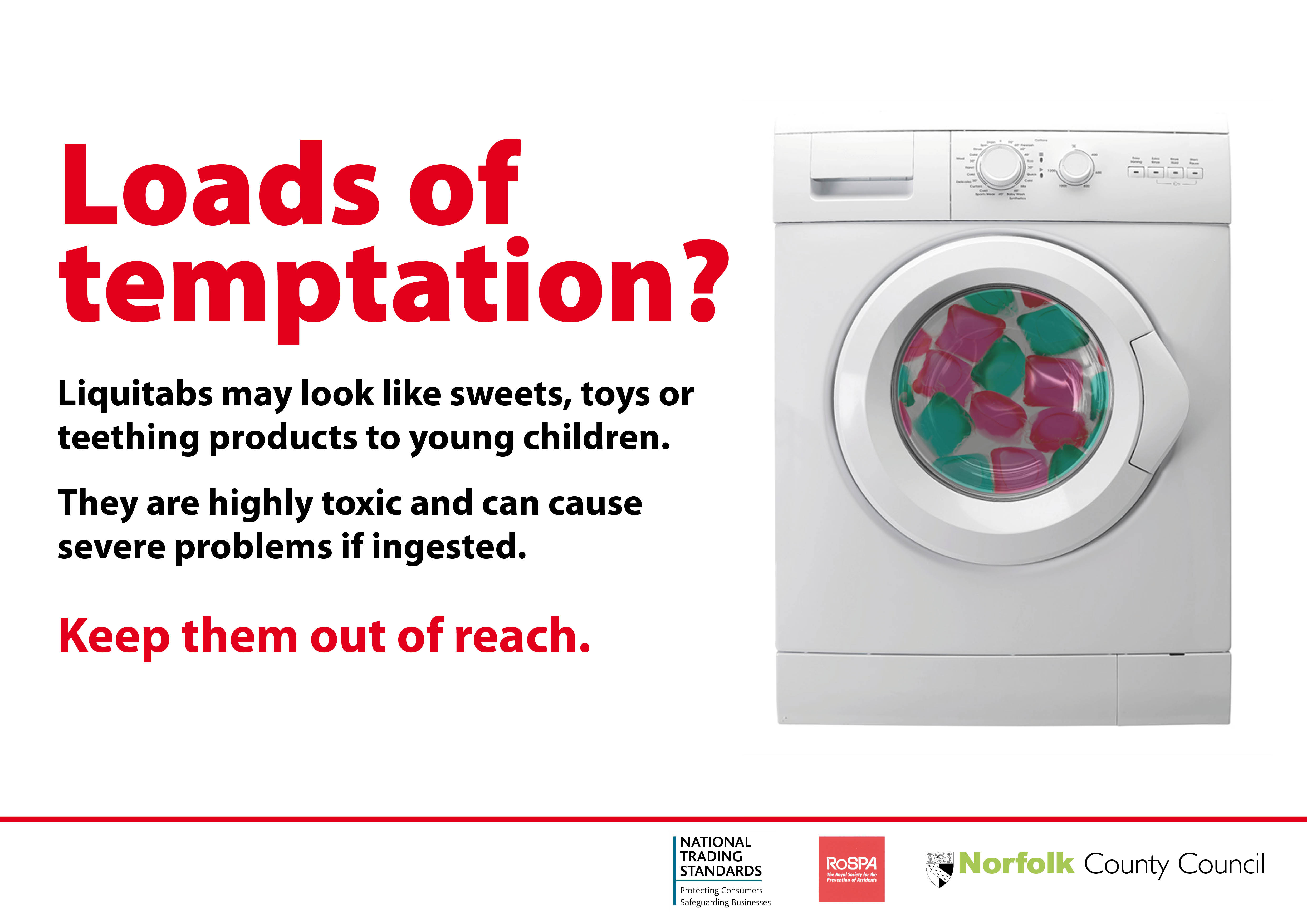Digital artwork warning of the importance of keeping liquitabs out of reach of young children.