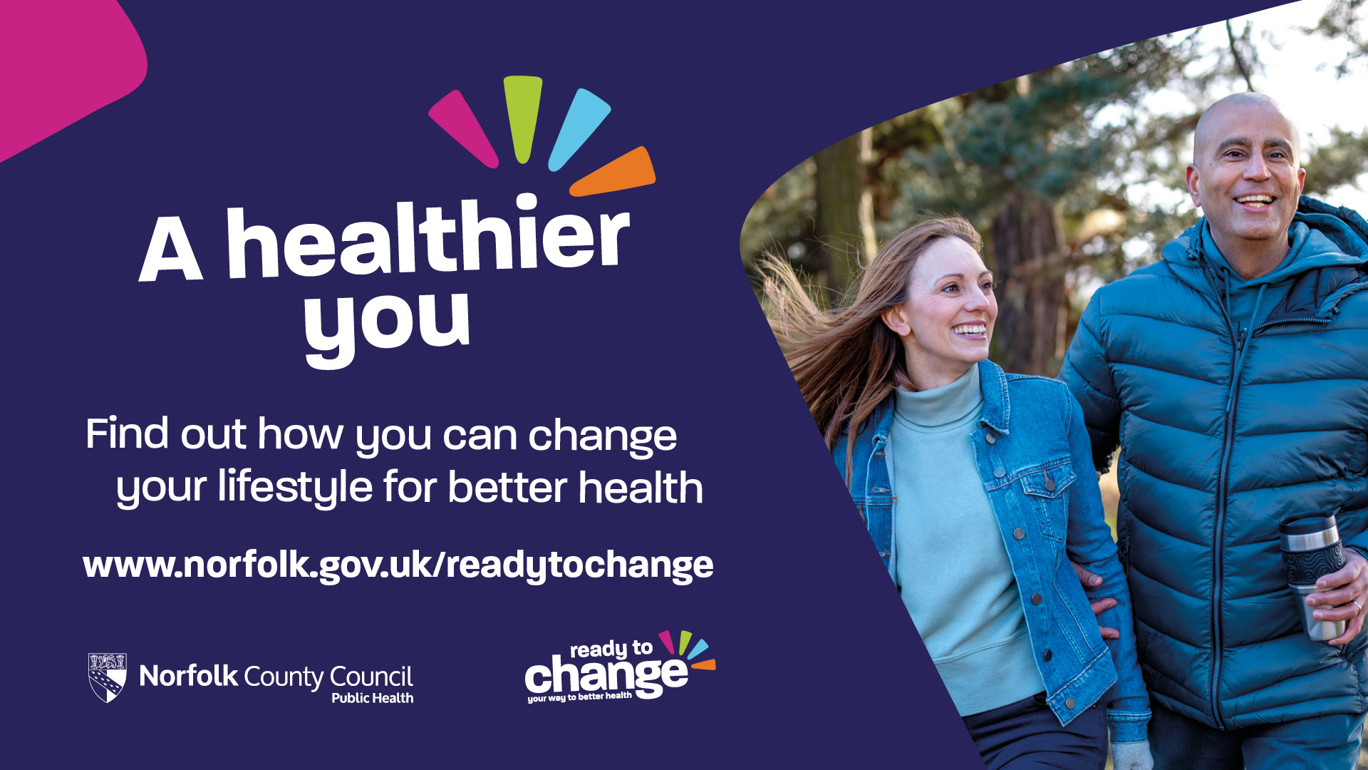 Ready to Change: Your way to better health is a brand new behaviour change online platform giving Norfolk residents practical tools to help them make healthier choices and decisions. Developed in partnership with Public Health practitioners in Norfolk and behaviour change subject experts from the University of East Anglia (UEA) the site includes lots of interactive tools and step by step guides that will help people make the changes needed to improve their diet, physical activity and other lifestyle habits such as drinking or smoking. The tool has been designed to enable residents of Norfolk to independently self-serve to make improvements to their health.